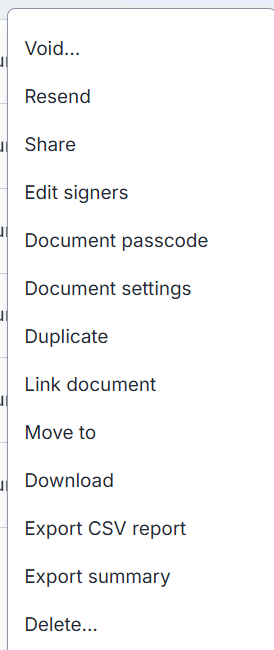 The Document menu is a menu that you can use to manage your documents in Sign. The following is a brief explanation of the Document menu: