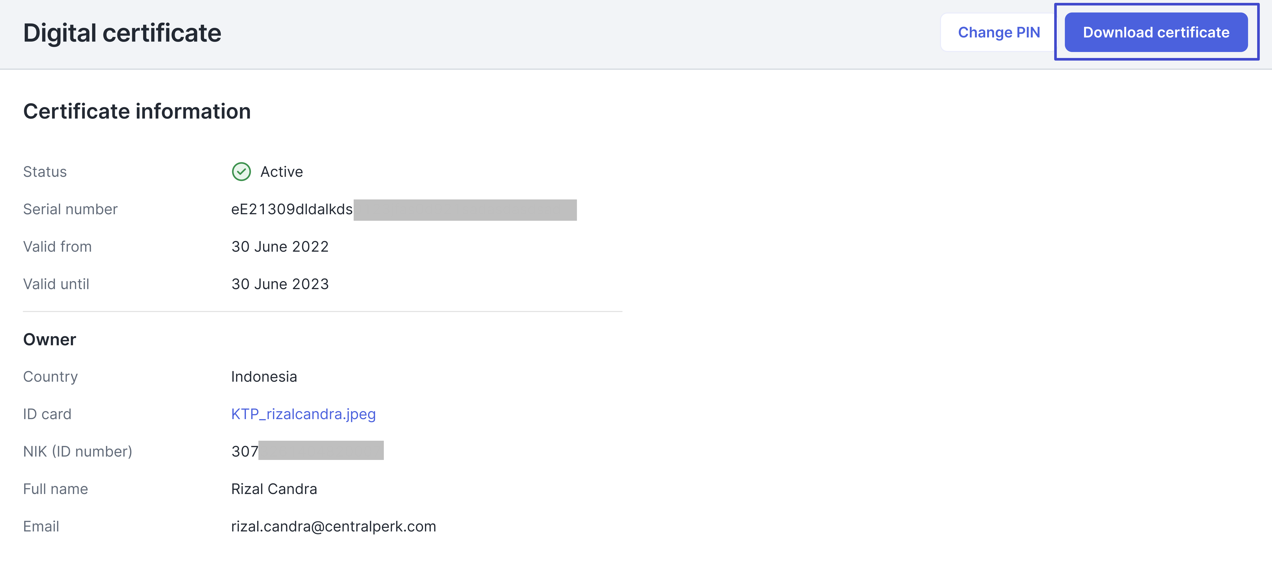Then, your digital certificate will be displayed, if you have done the eKYC process.