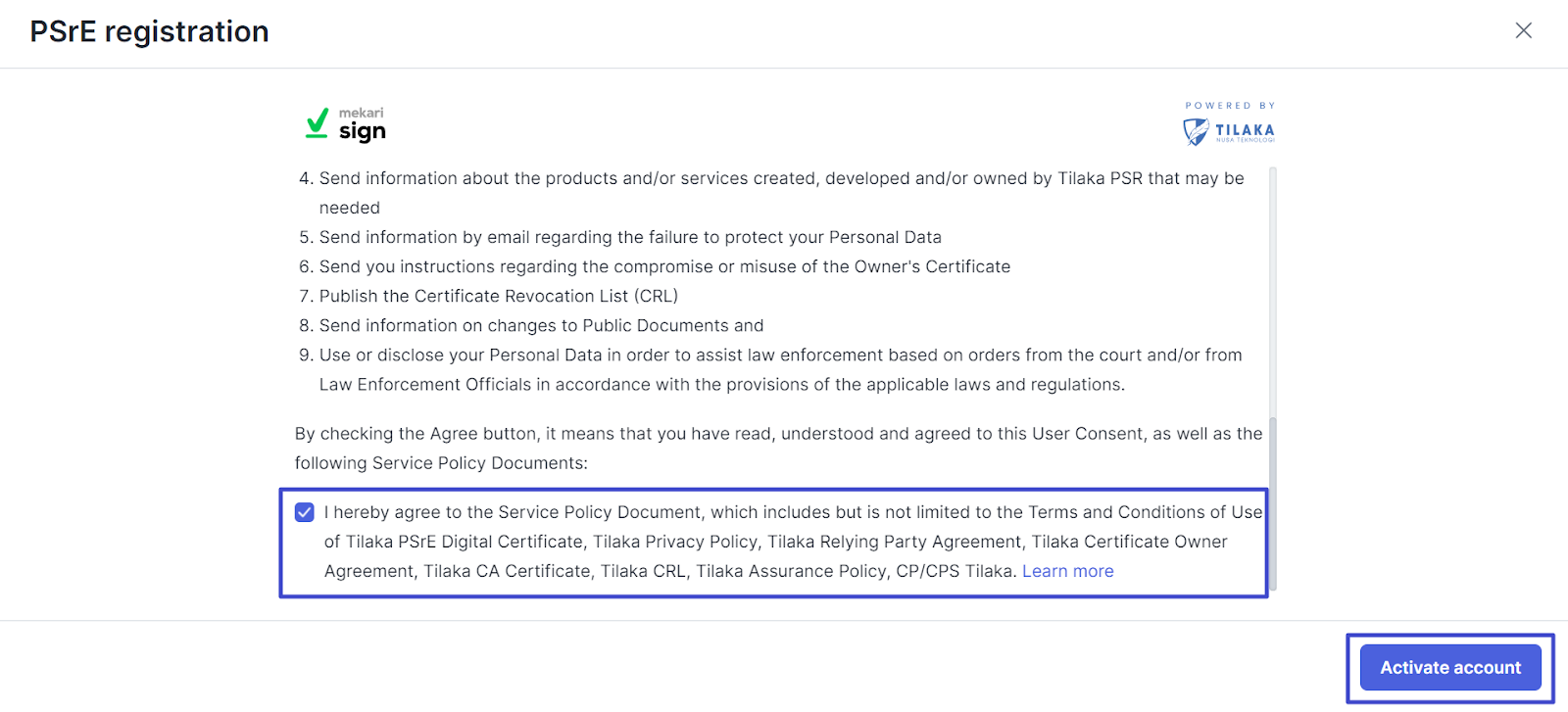 You will enter the user agreement page, then at the bottom, check the column provided to agree and click "Activate account".