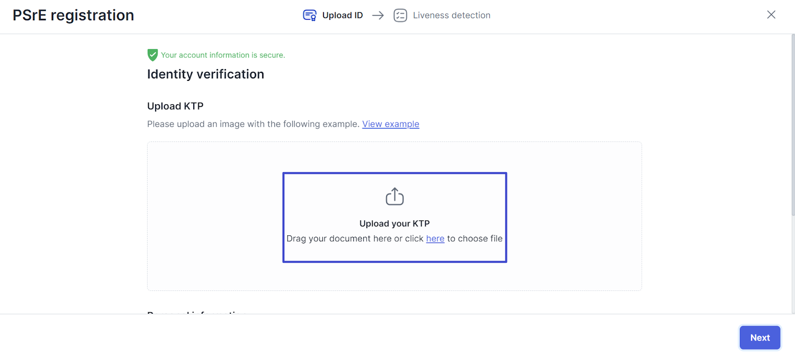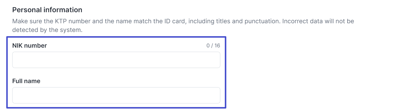 - Enter your NIK and full name in the columns provided. And click “Next” to continue.