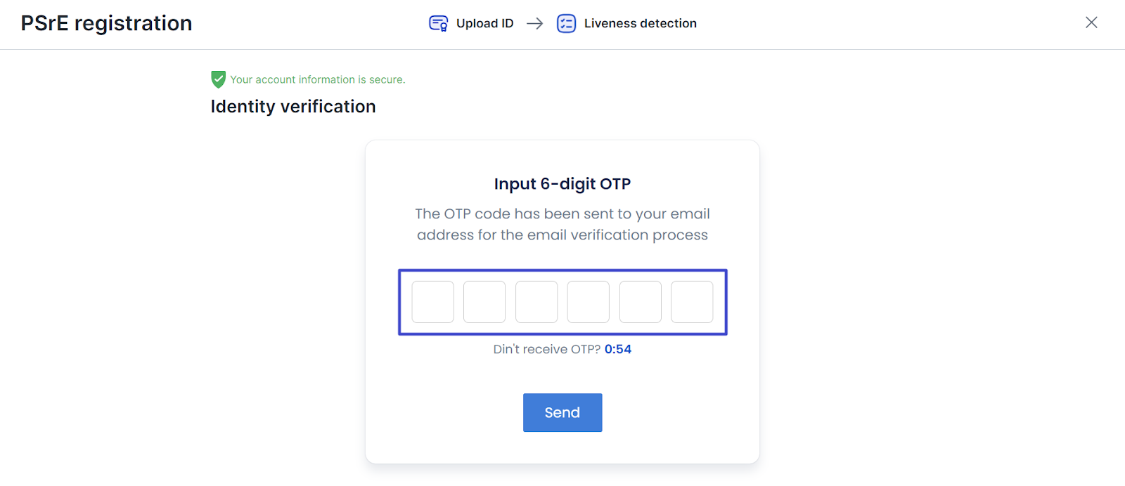 - Next, enter the OTP number that has been sent to your email. And click "Send" .