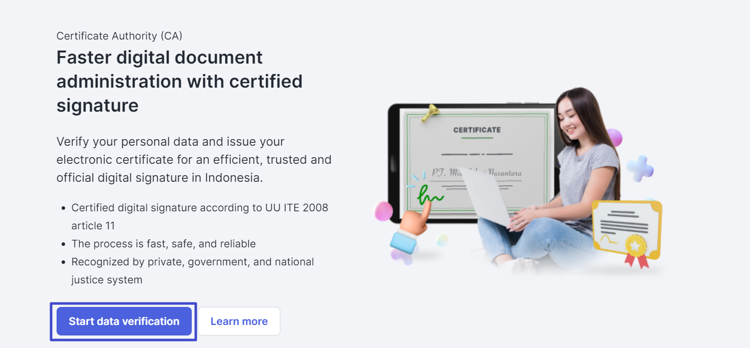 At Mekari Sign, you can now carry out verification and the eKYC process, which functions to issue digital certificates, so that the electronic signature you provide is official and recognized by the private sector, government and the national justice system (according to the 2008 ITE Law article 11). This certificate is valid for a year, so you can carry out the verification and eKYC process once a year.