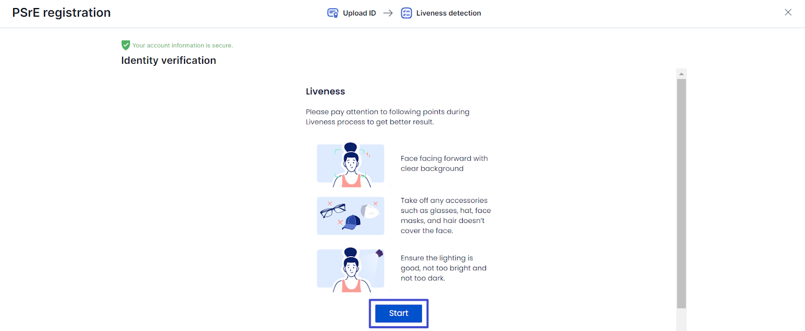 If you do not meet the criteria mentioned above, you cannot carry out the eKYC process, and when you click "Start data verification", you will be directed to the following screen.