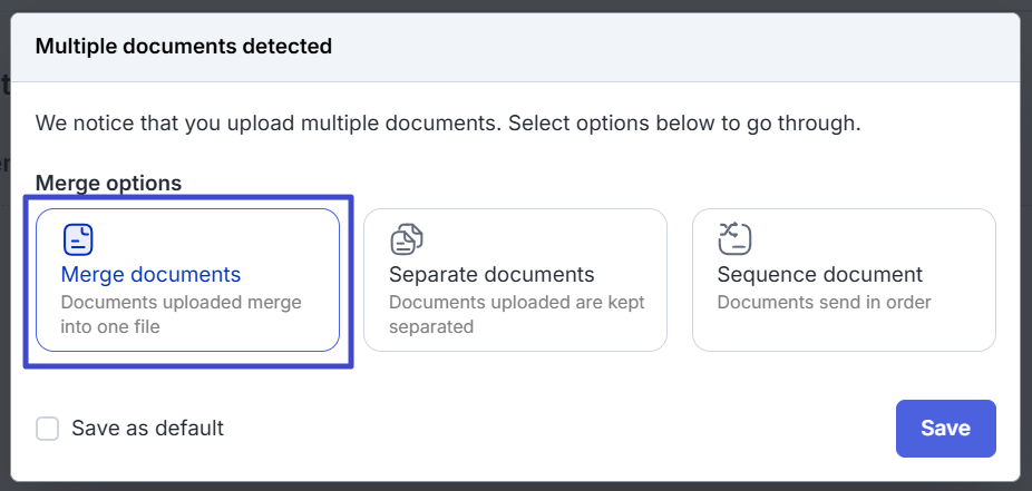 You can also check ‘Save as default’ if you want to upload ‘Merge documents’ for each uploaded document.