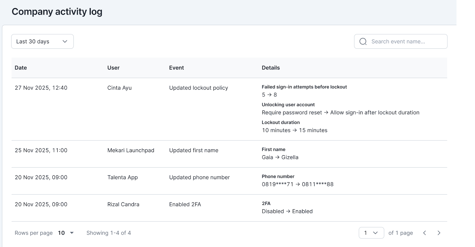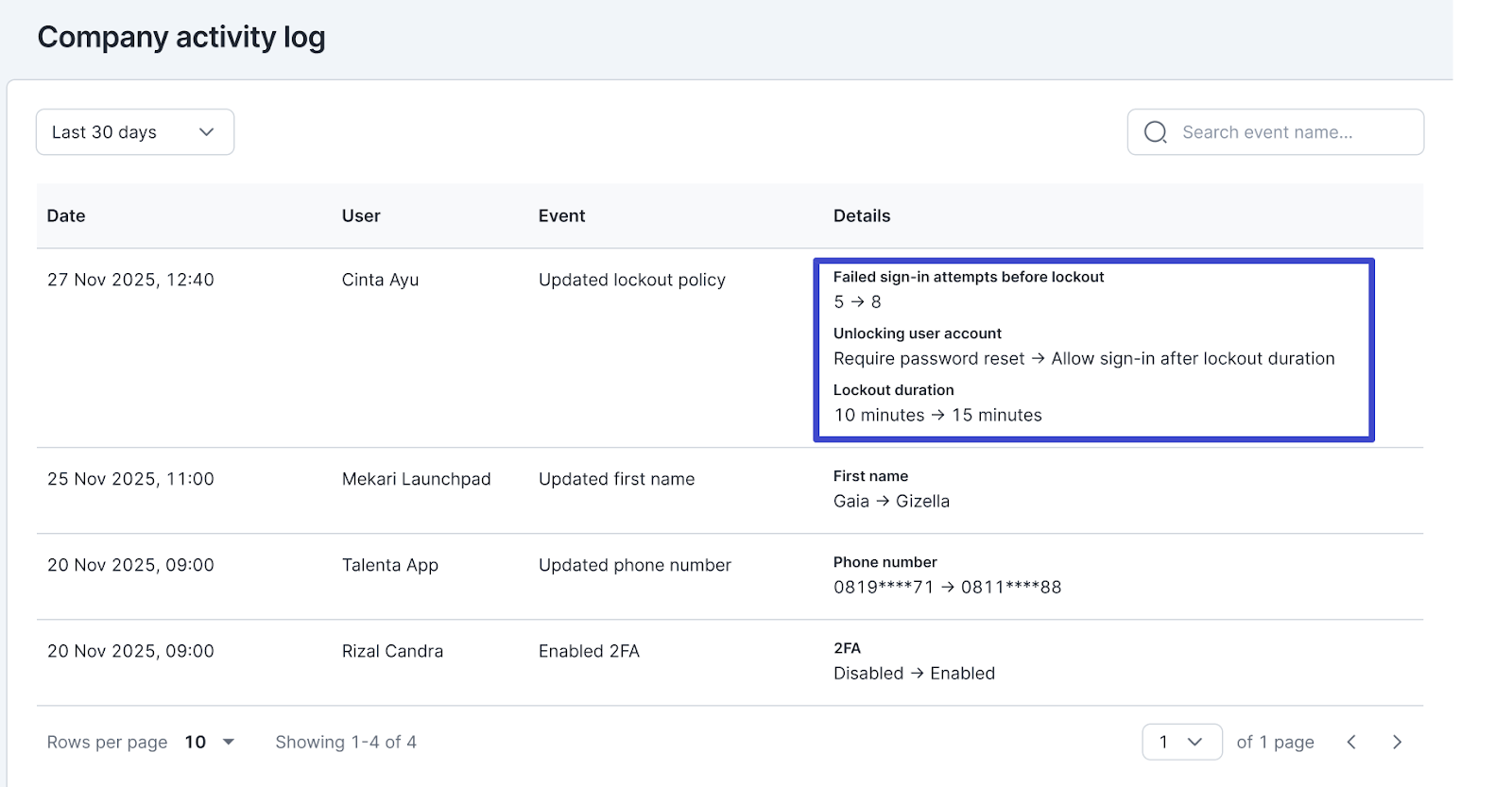 Next, click the “Company activity log” submenu.