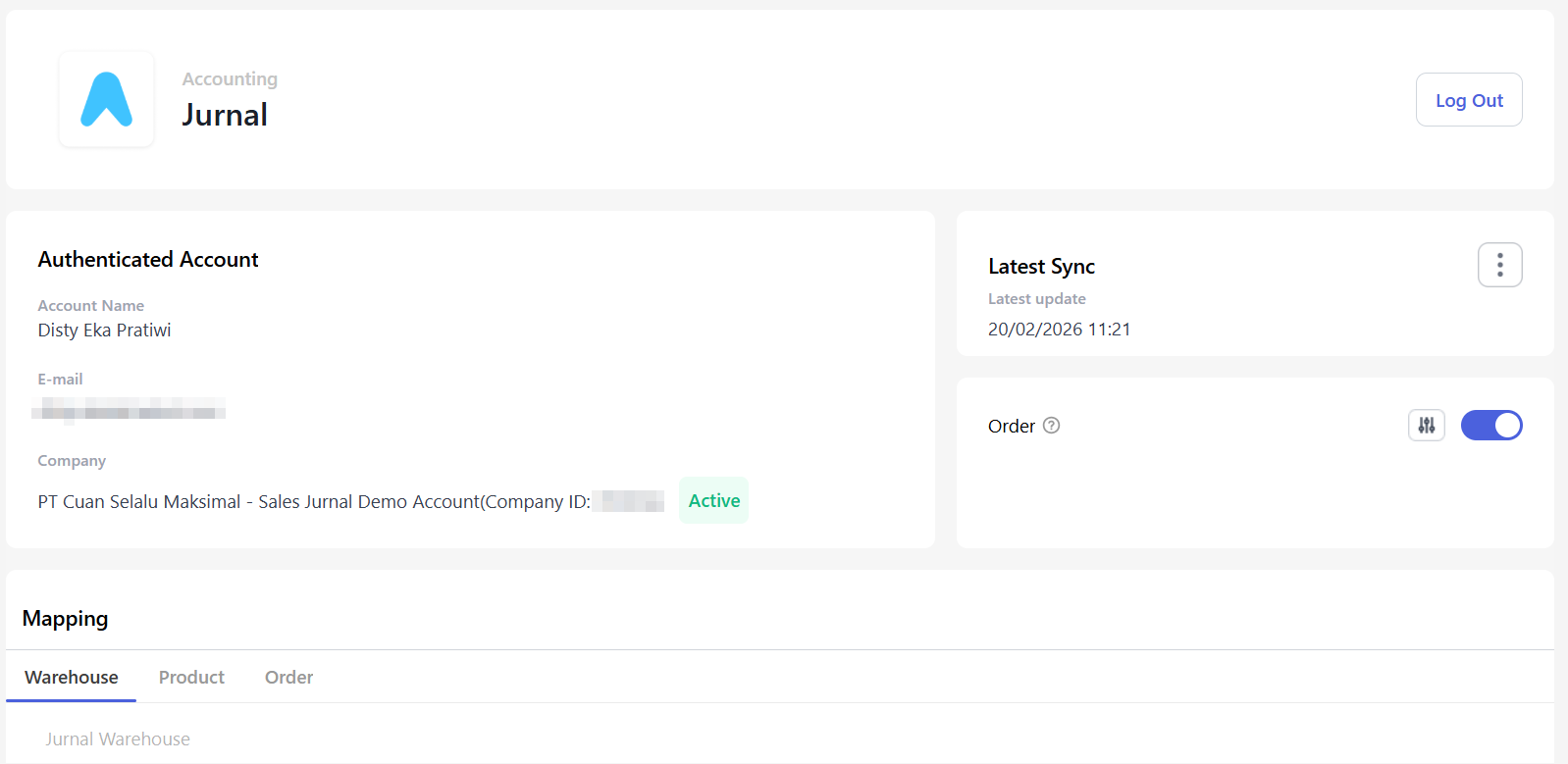 You will be redirected back to the Jurnal integration page in the Mekari POS F&B Back Office. Then you can map warehouses and accounts (CoA) for products, orders, taxes, and expenses.