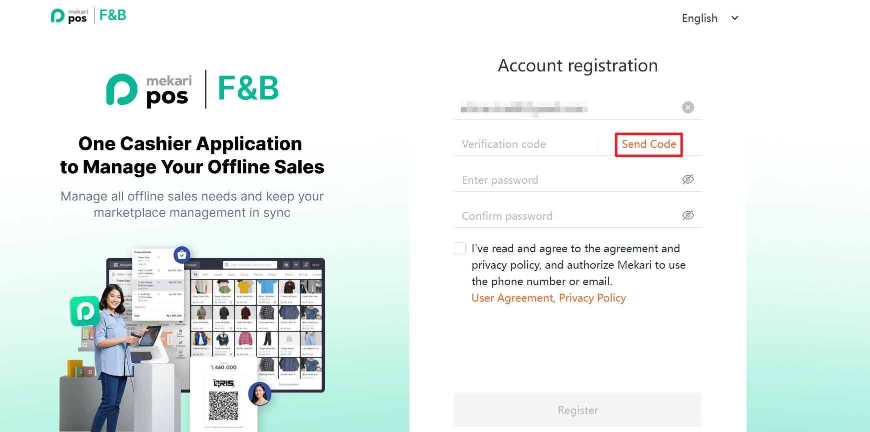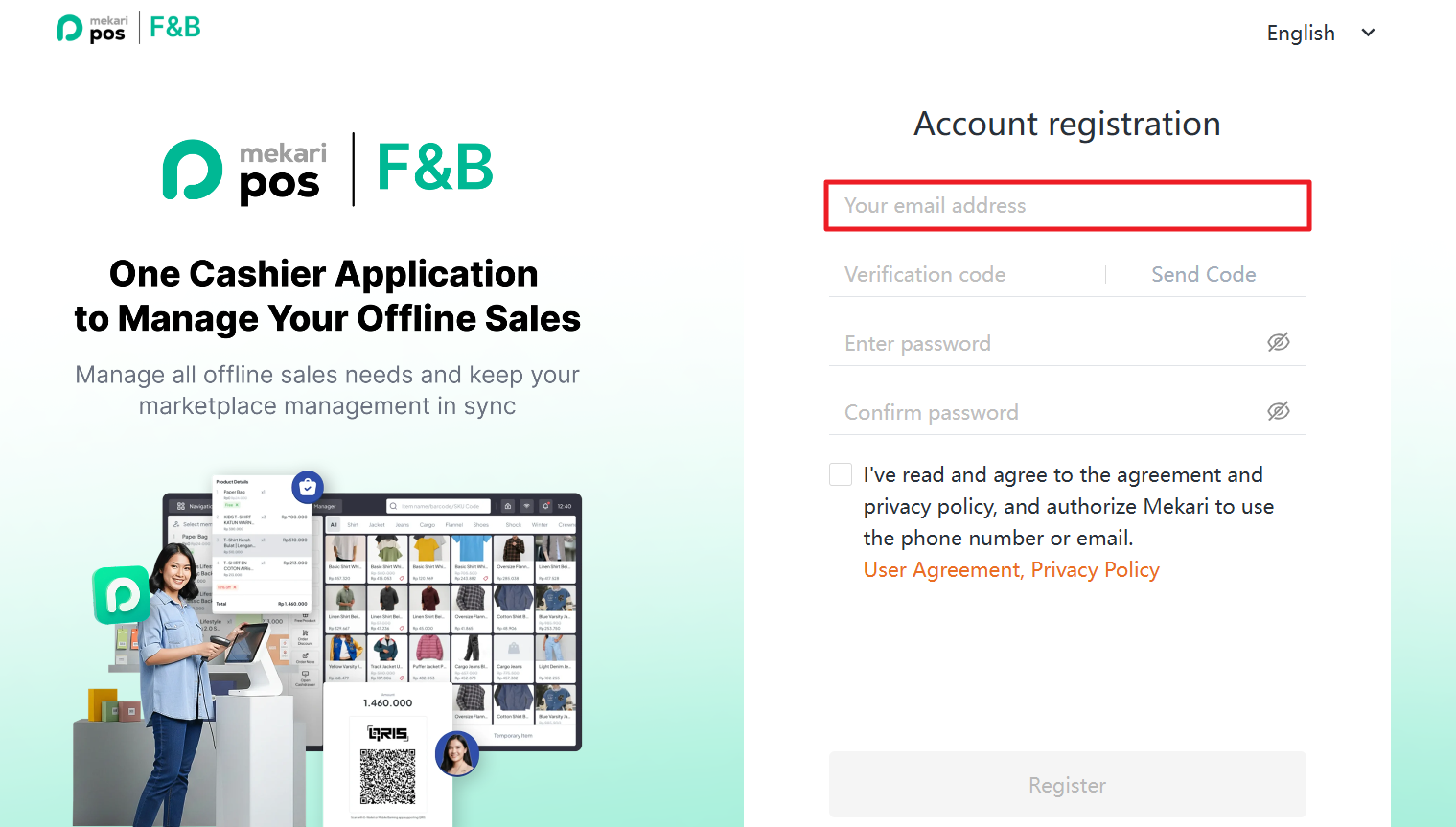 Here are the steps to register an account in the Mekari POS F&B Back Office: