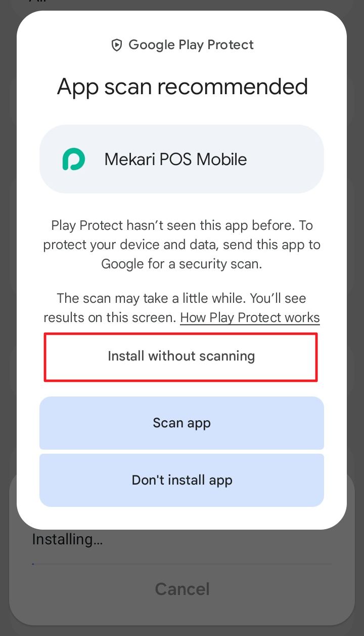 Then click the application to be downloaded and select “Install without scanning” to proceed with installing the application on Android.