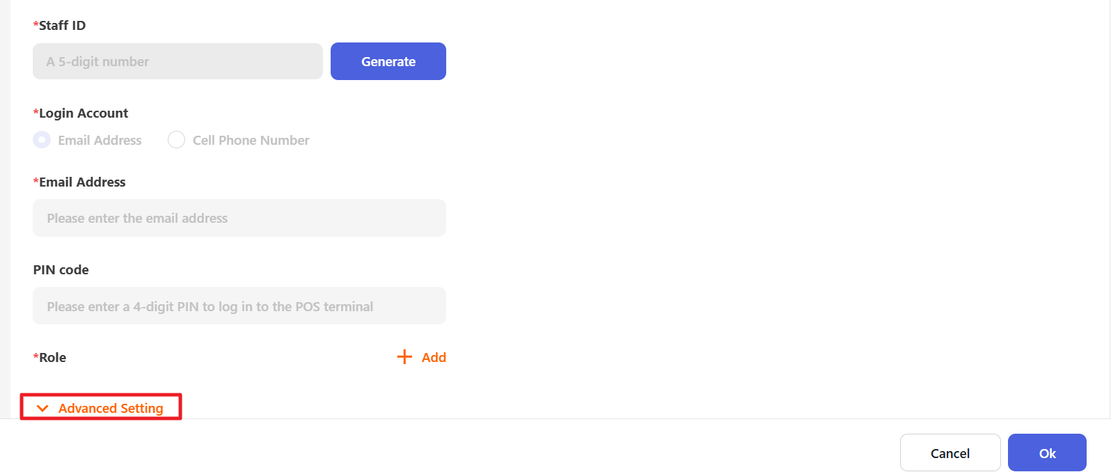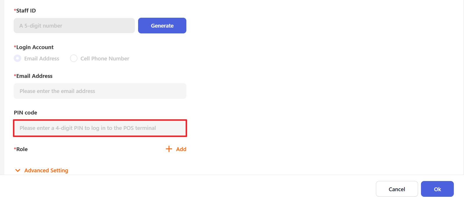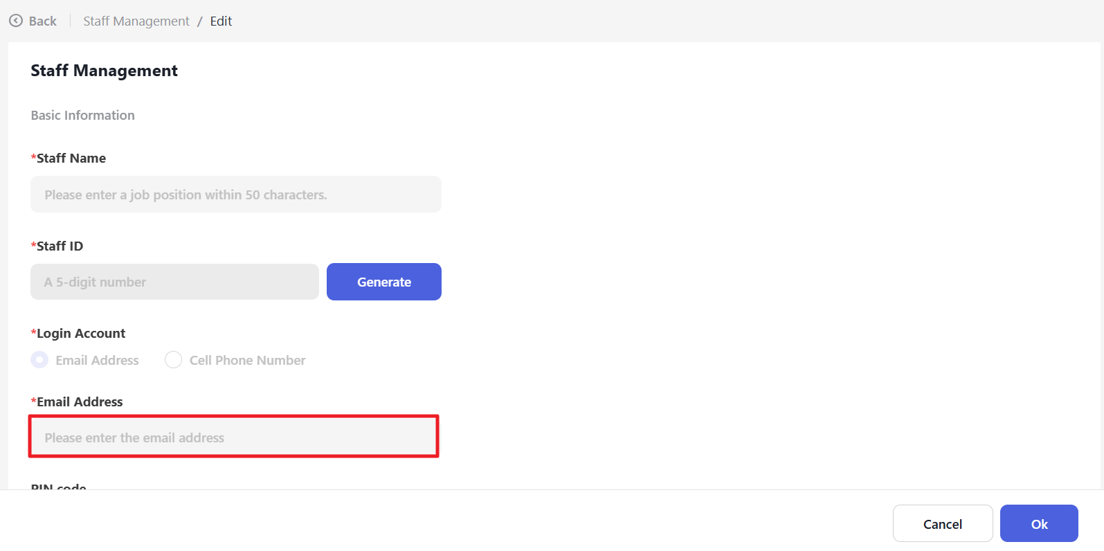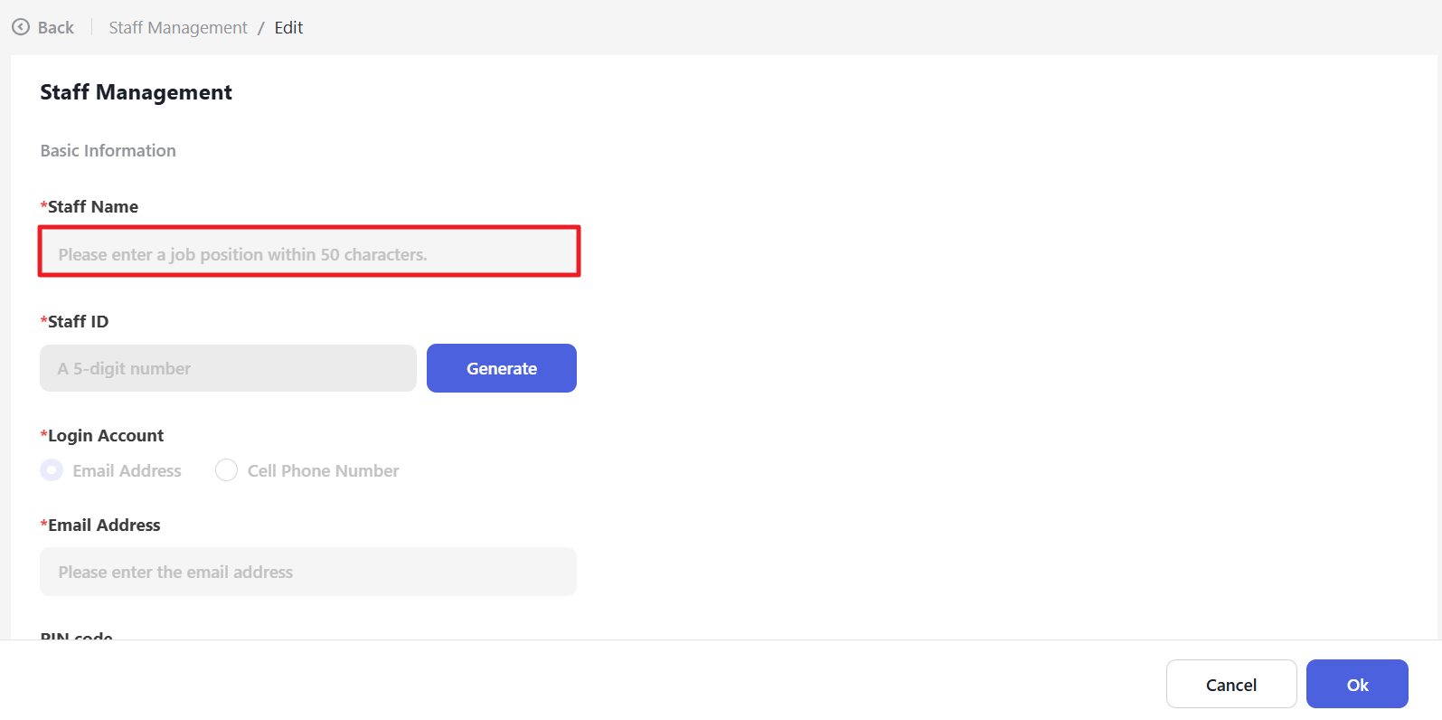 Click “Generate” to generate the Staff ID automatically.
