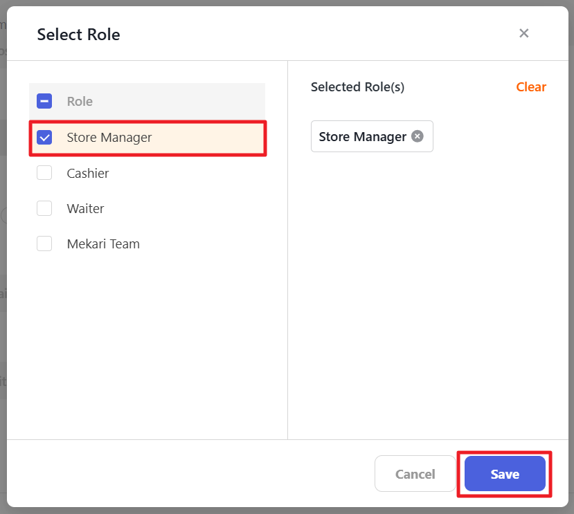 Select the role of the employee and click “Save”.
