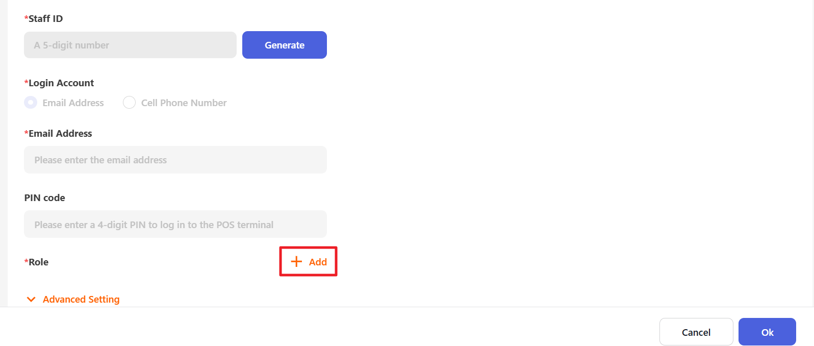 Click the “+ Add” button to add the staff’s role.