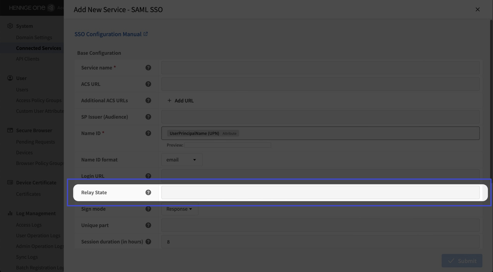 If required, enter the Relay State from the service in the “Relay State” field.