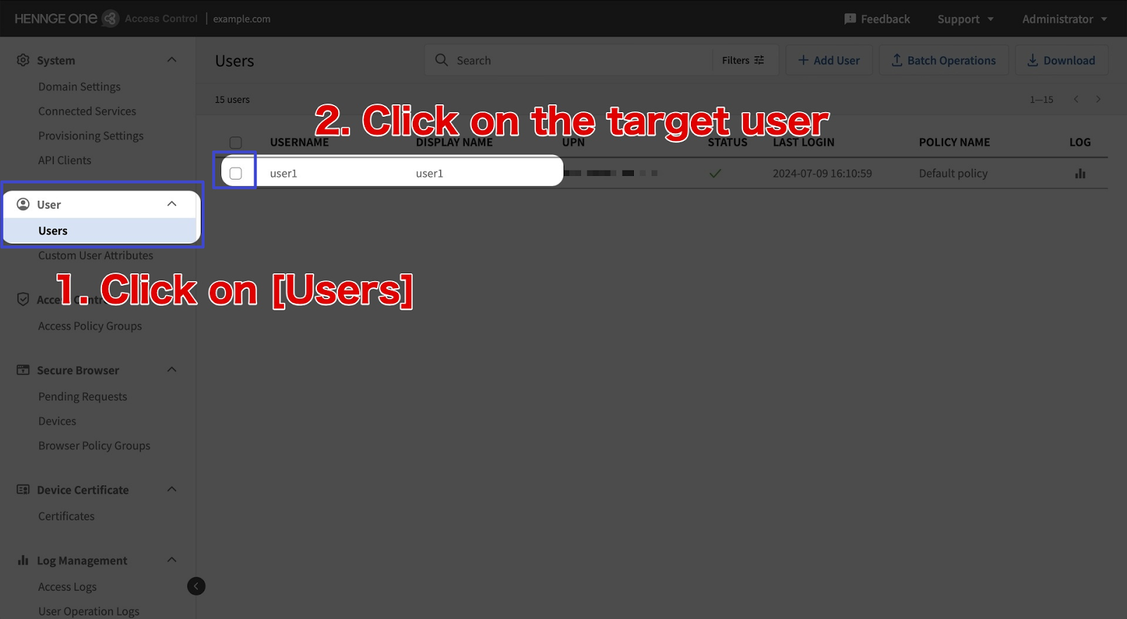 If you want to configure access permissions for specific users, click the “Users” menu, then select the users you want to grant access to.
