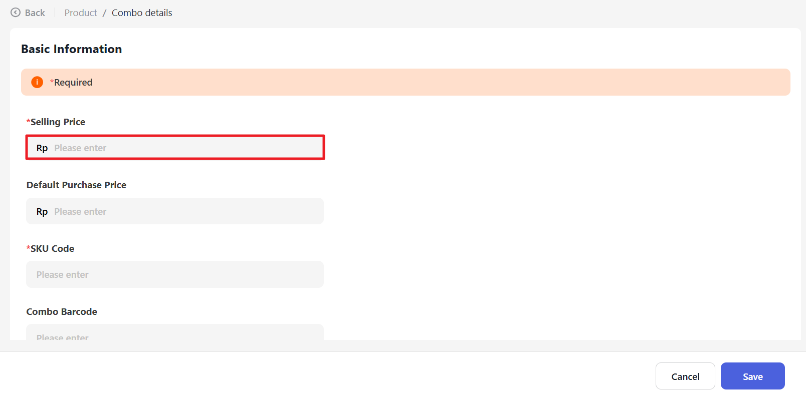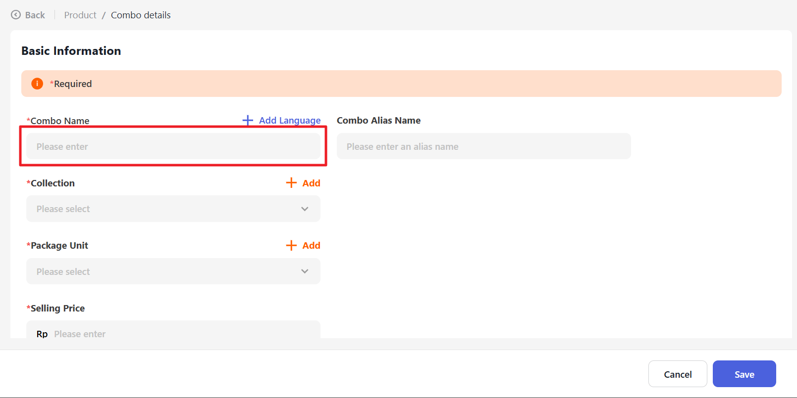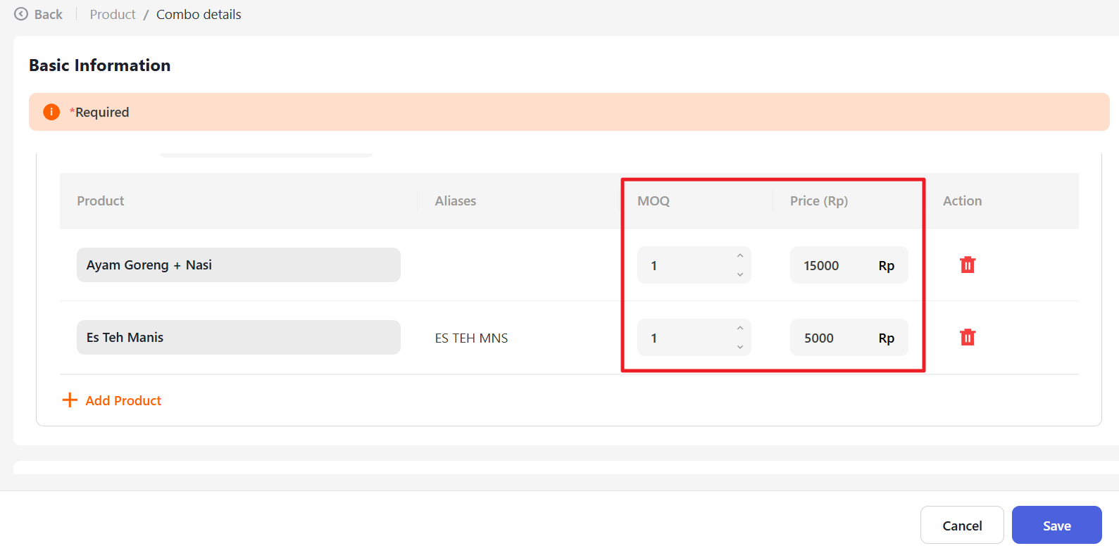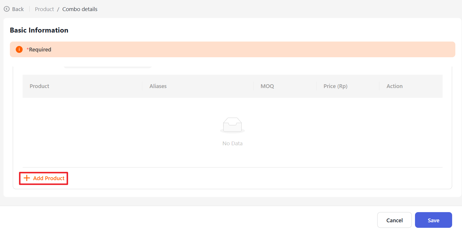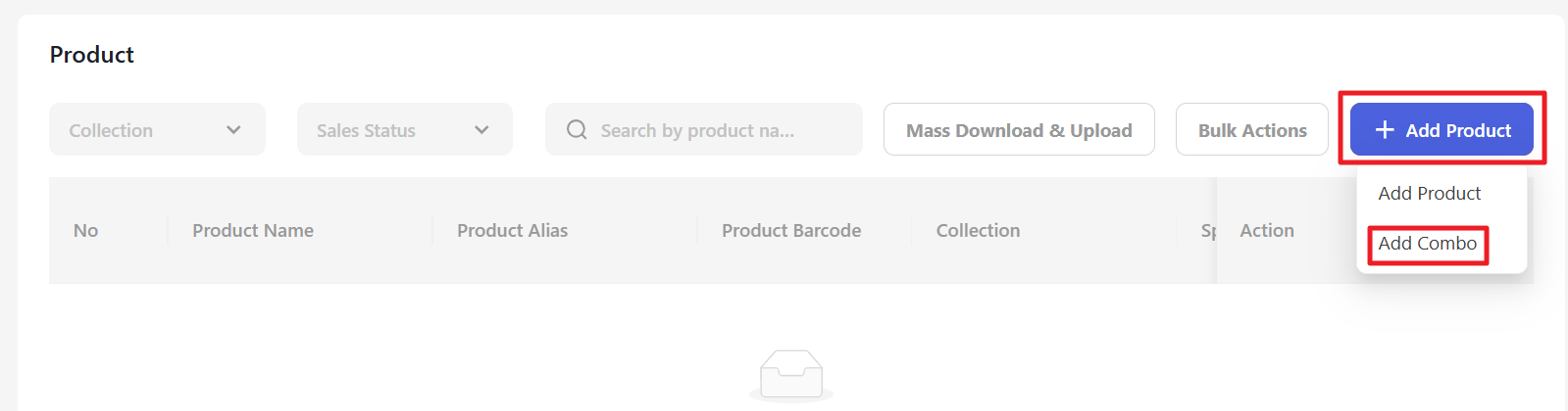 Next, click the “+ Add product” button and select Add Combo.