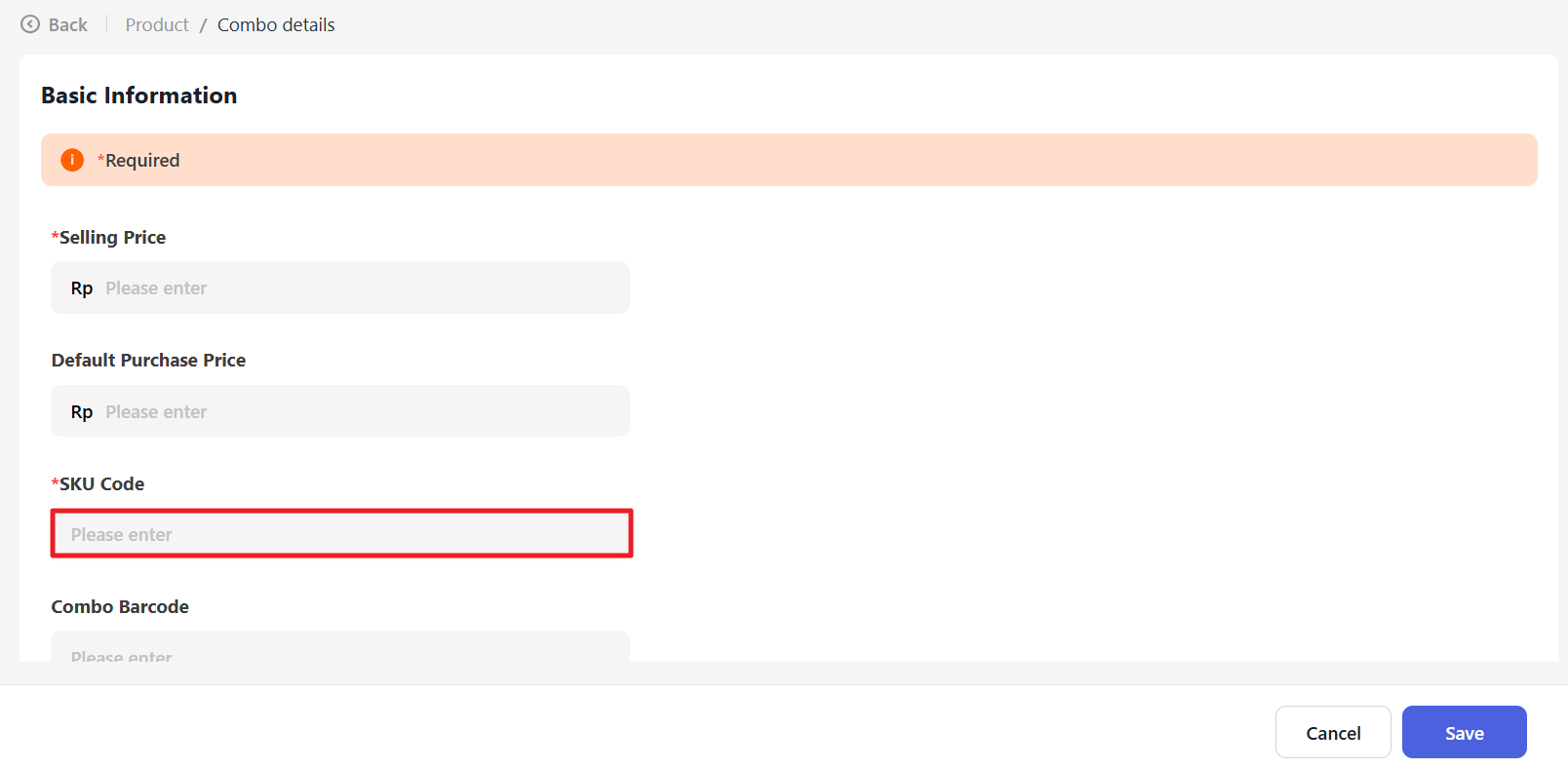 Add the SKU Code you want for the package.