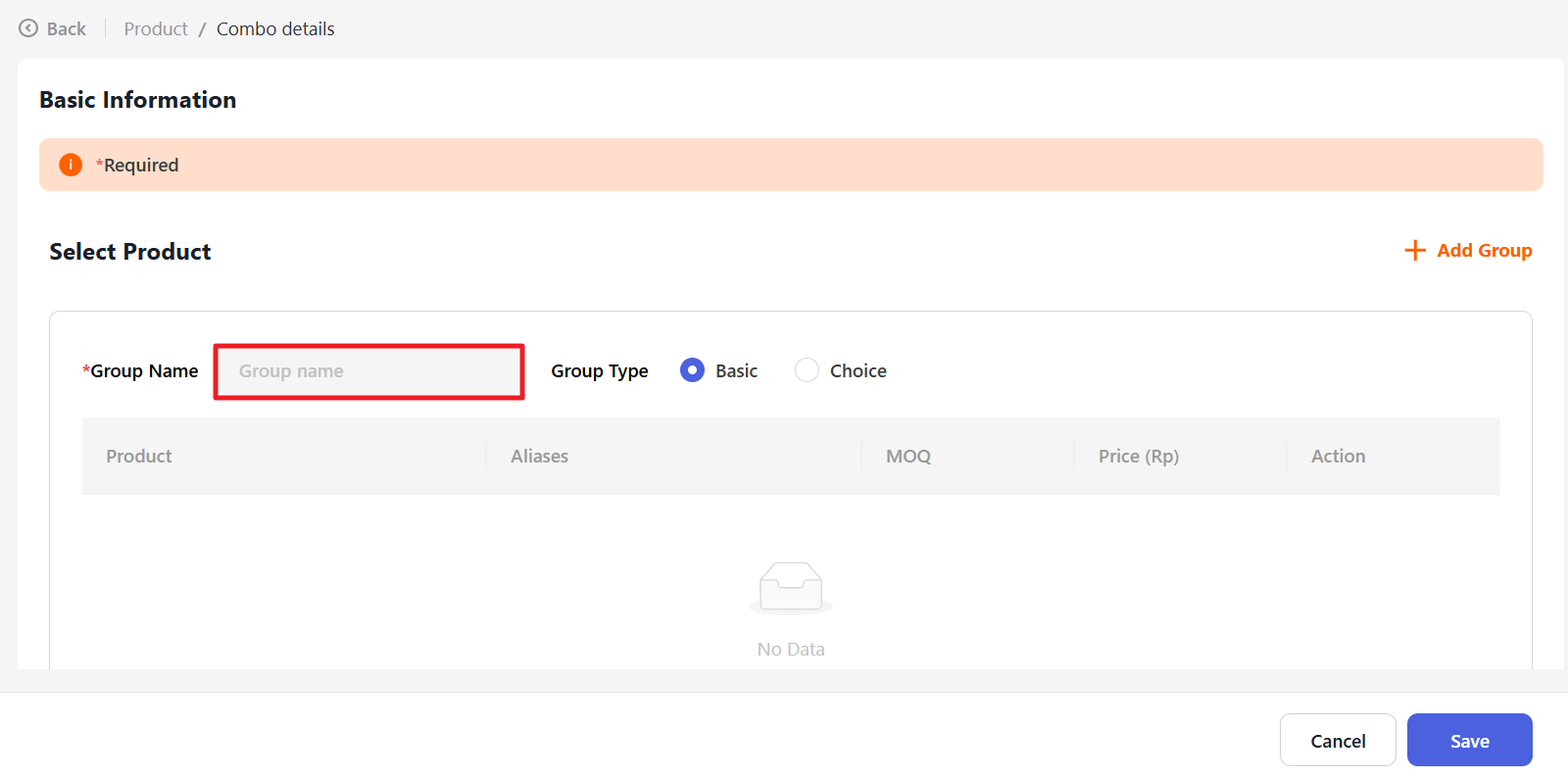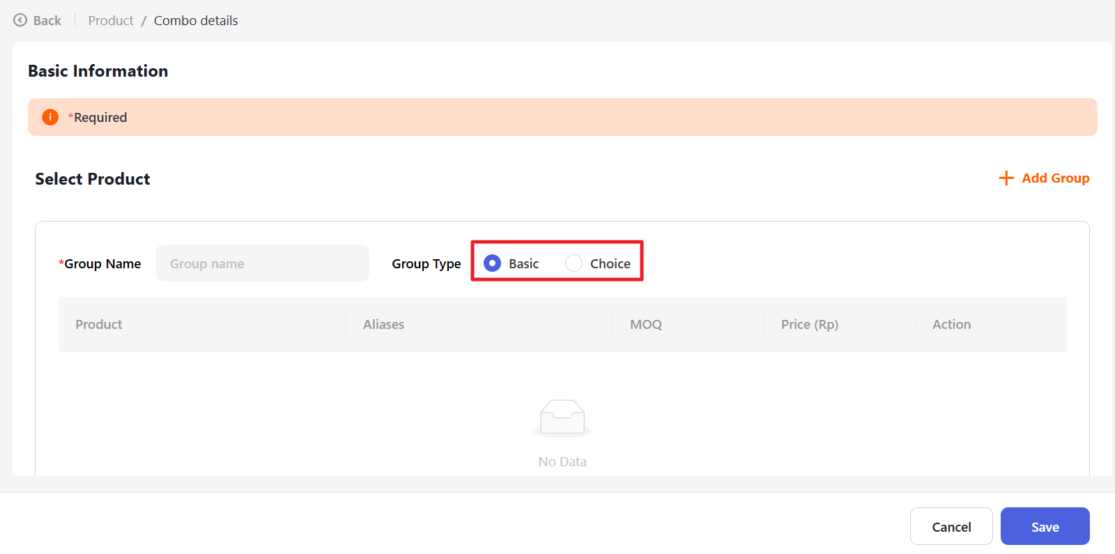 Then determine the type of the group, whether Basic or Optional.