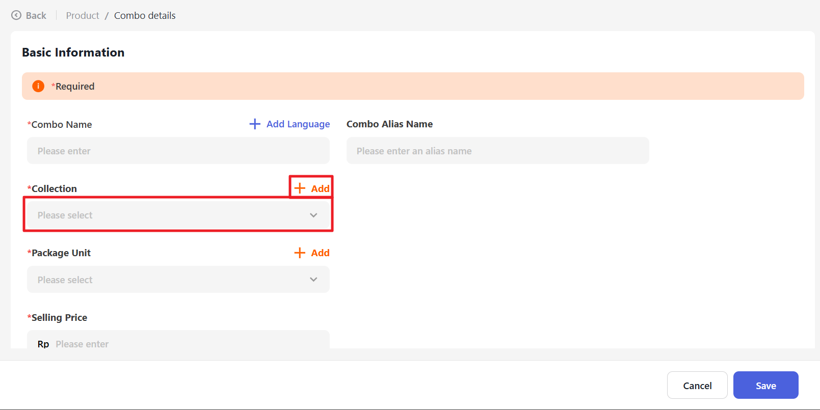 Select the Collection name that has been previously created or click “+ Add” to add a new collection.