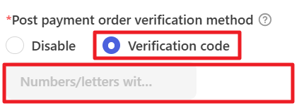 2 Payment mode Order first pay later, where customers can order first and pay after eating. 3 Post payment order verification method To prevent customers from ordering from afar and disrupting operations, the cashier must enter a verification code every time an order is placed and you can choose: