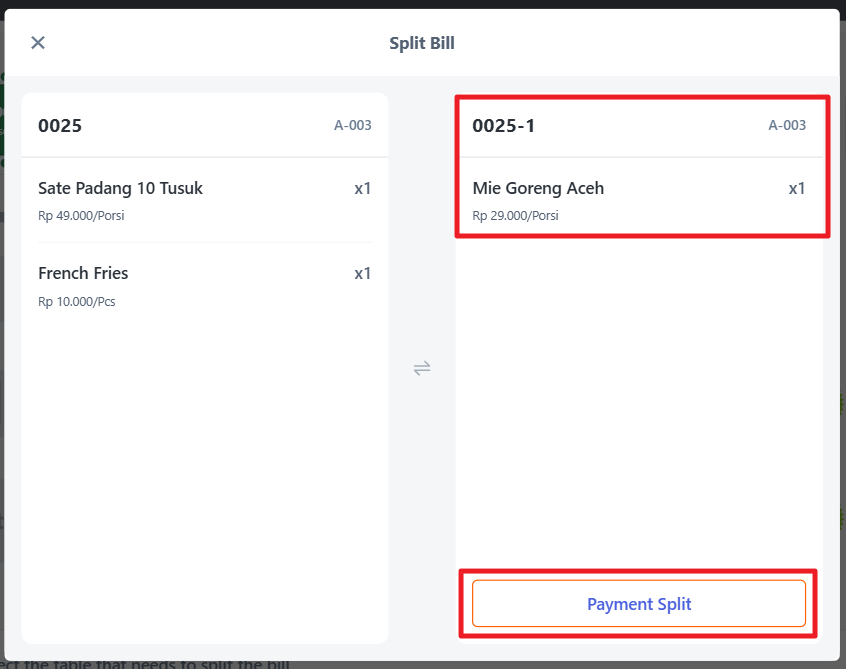 That concludes the explanation on how to merge/split bills in Mekari POS F&B. Next, learn how to set up order QR codes here.