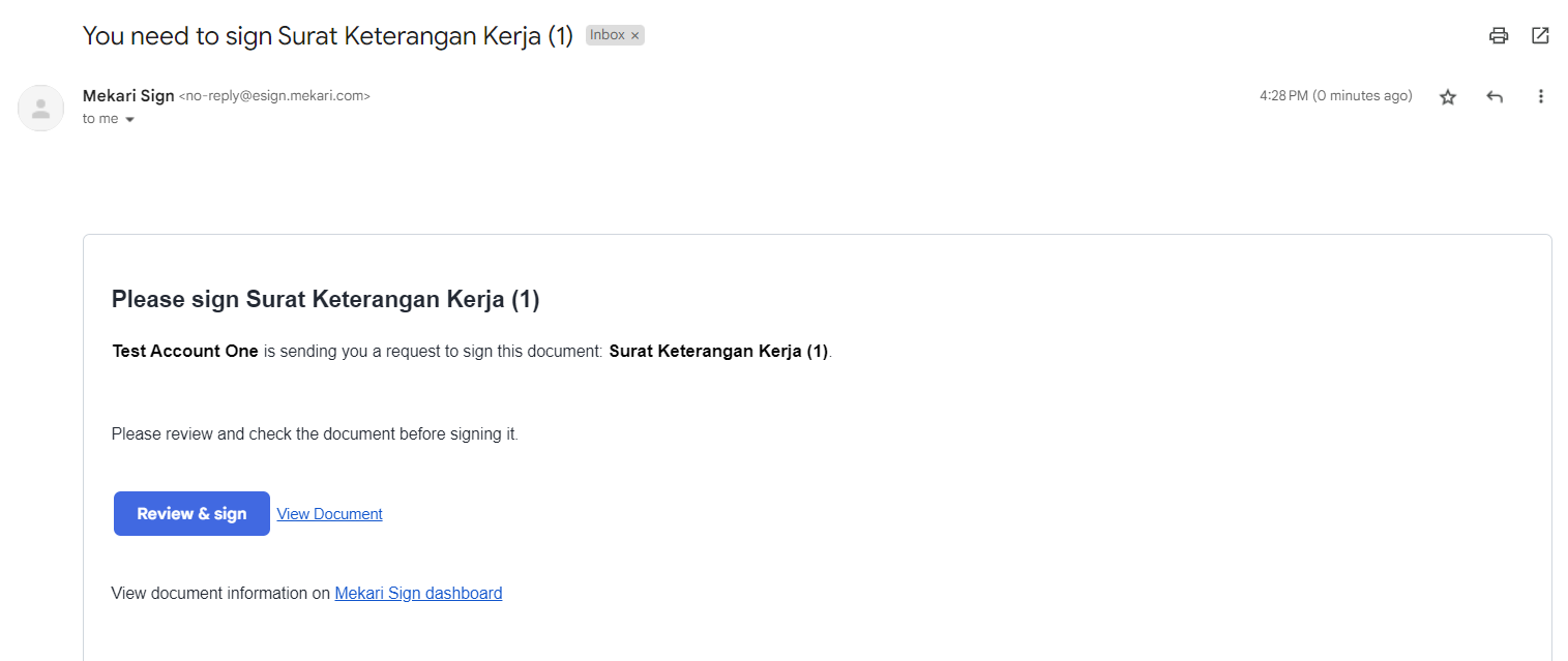 Dan setelah itu, sistem juga akan mengirimkan email pemberitahuan secara otomatis ke email penerima dokumen seperti ini.