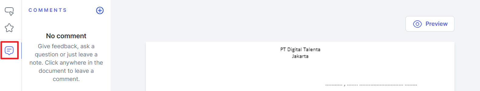 Pada bagian kiri atas, Anda dapat klik ikon “komentar” untuk menambahkan komentar pada dokumen.