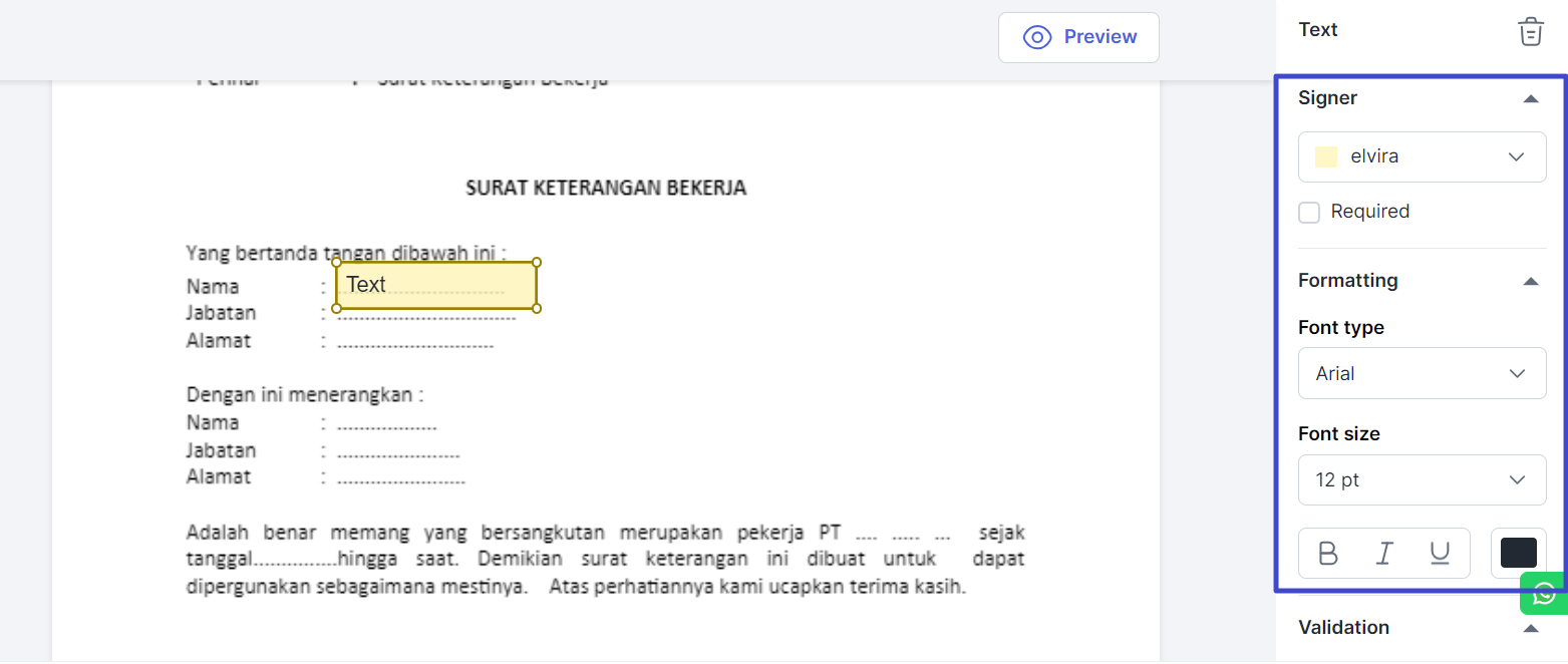 - Signer: Menyesuaikan untuk siapa kolom tersebut ditujukan.