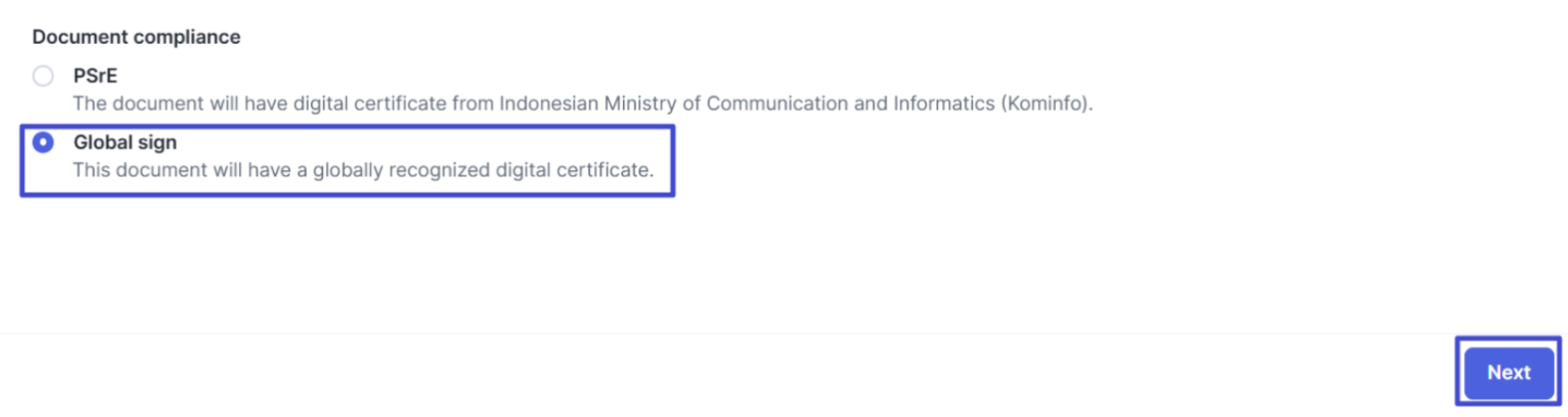 Pada Mekari Sign, Anda dapat mengunggah, mengesahkan serta mengirimkannya langsung ke pihak-pihak terkait. Dokumen yang diunggah bisa ditandatangani dengan pilihan Global sign, di mana dokumen tersebut memiliki sertifikat digital yang diakui secara global