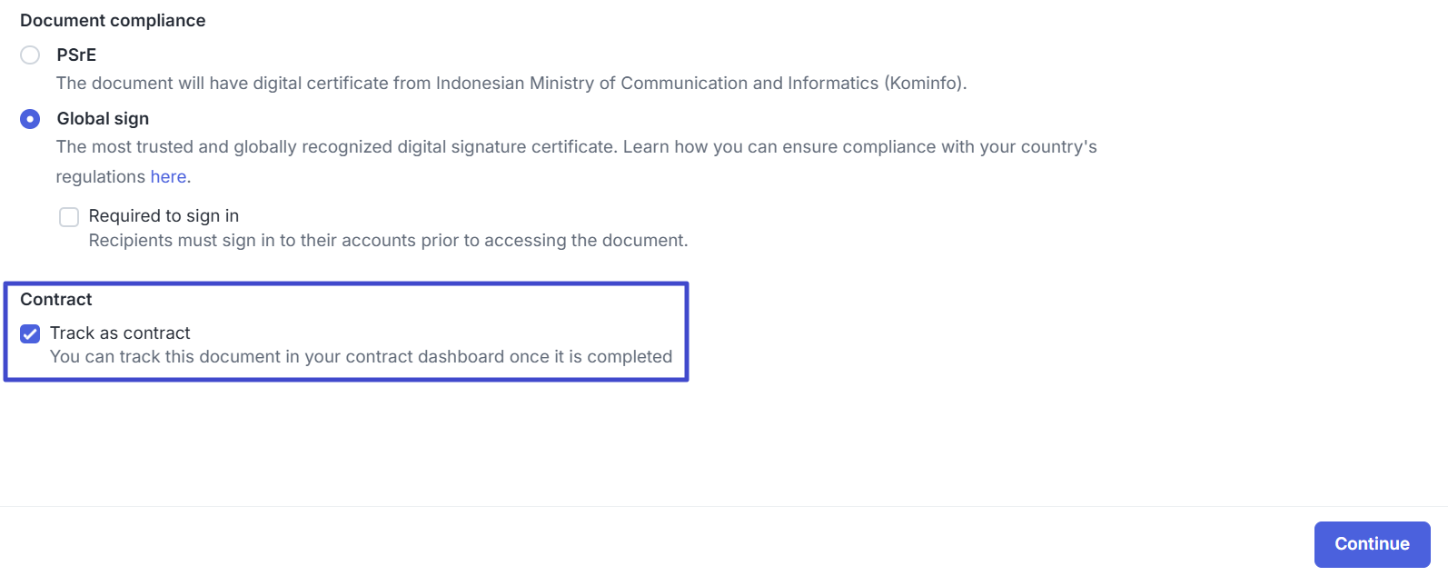 Centang Track as contract jika dokumen ingin dilacak sebagai kontrak.