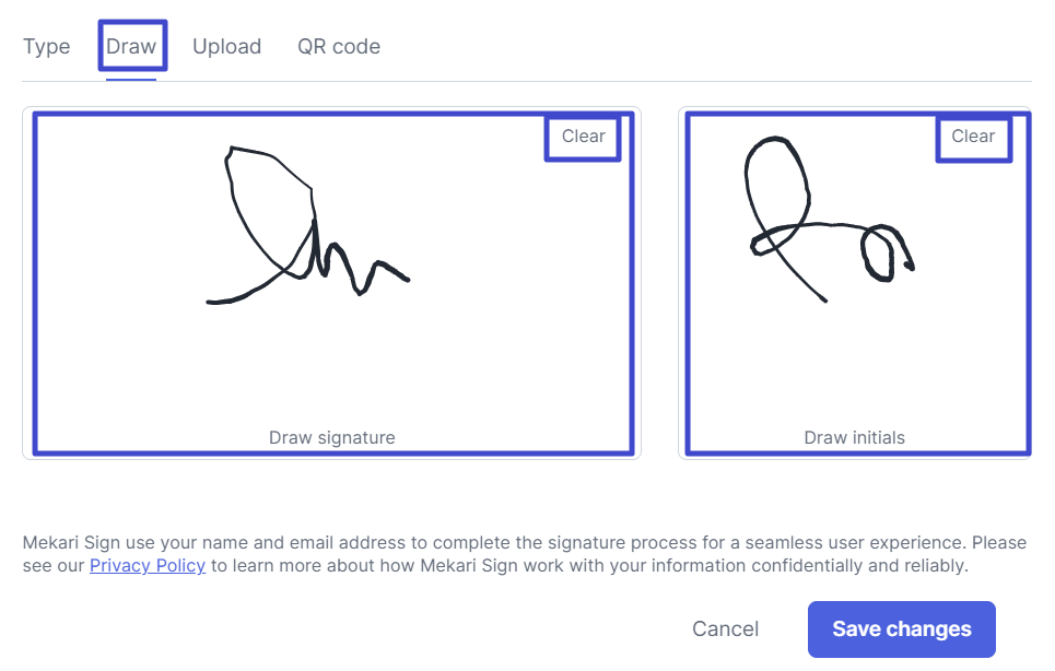 Pada Mekari Sign, Anda dapat menambahkan tanda tangan serta paraf, sehingga dapat mempermudah Anda untuk menyisipkan tanda tangan baik atas nama pribadi maupun perusahaan pada dokumen-dokumen Anda.
