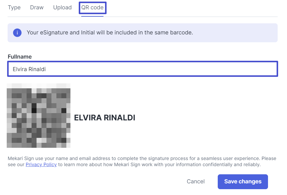 Anda juga dapat menggunakan tanda tangan dalam bentuk QR Code secara langsung.