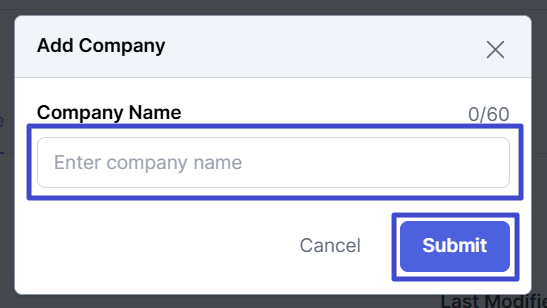 - Masukkan nama perusahaan pada kolom yang disediakan dan klik “Submit” untuk menyimpan.