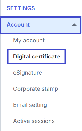 Pada tab Account dan pilih Digital certificate.