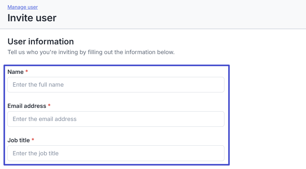 Lengkapi informasi seperti nama, email dan nama posisi pengguna tersebut di perusahaan.