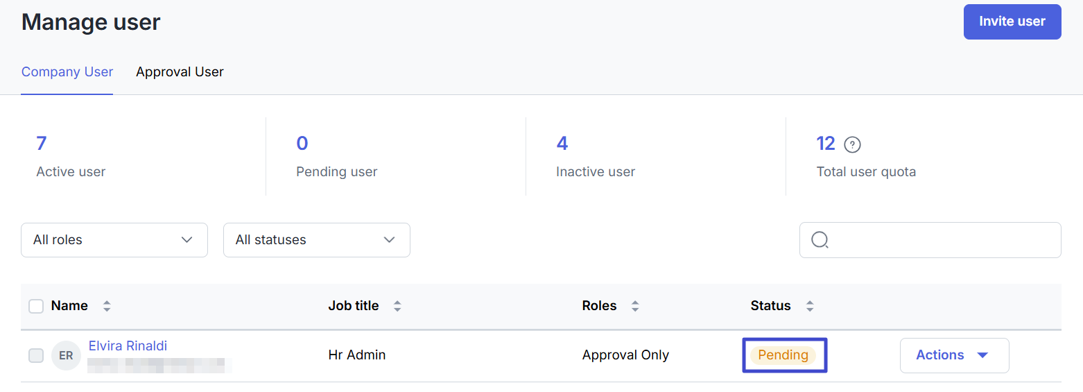 Klik “Invite user” untuk mengundang pengguna.