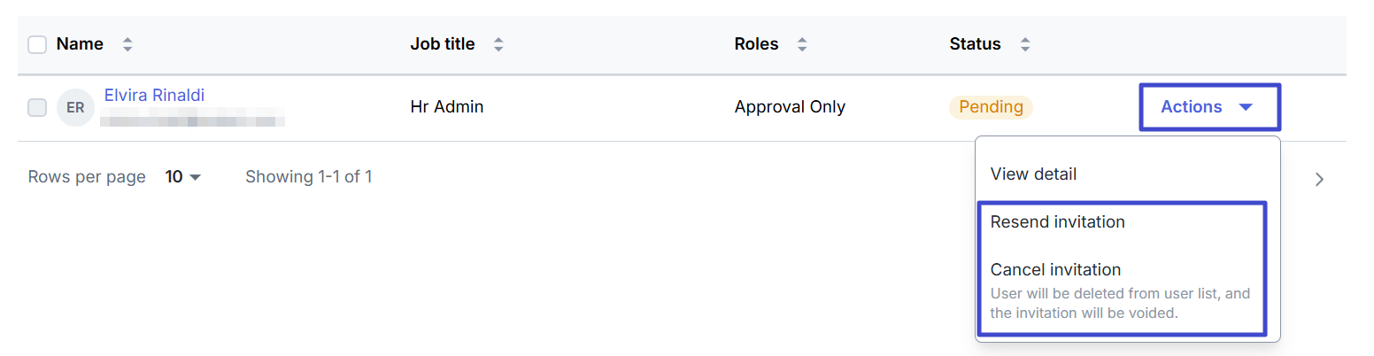 Selain itu, Anda dapat klik “Action” untuk mengirimkan undangan kembali atau membatalkan undangan.