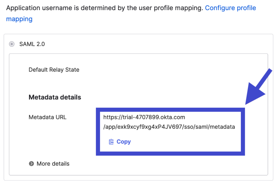 - Scroll ke bawah halaman hingga Anda menemukan kolom Metadata URL. Salin dan kirimkan url tersebut ke tim spesialis/aktivasi Mekari.