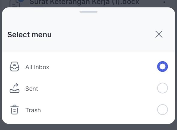Klik untuk masuk ke sub menu dokumen seperti All inbox, Sent dan Trash. |