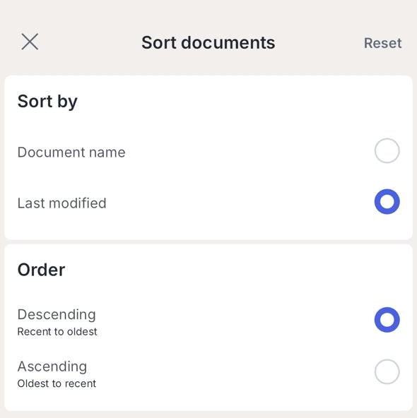 Klik untuk mensortir dokumen berdasarkan nama dokumen atau dokumen yang terakhir diubah. Anda juga bisa memfilter berdasarkan dokumen terbaru dan terlama. |