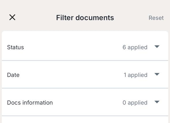 Klik untuk memunculkan dokumen berdasarkan filter status, tanggal dan informasi dokumen. |