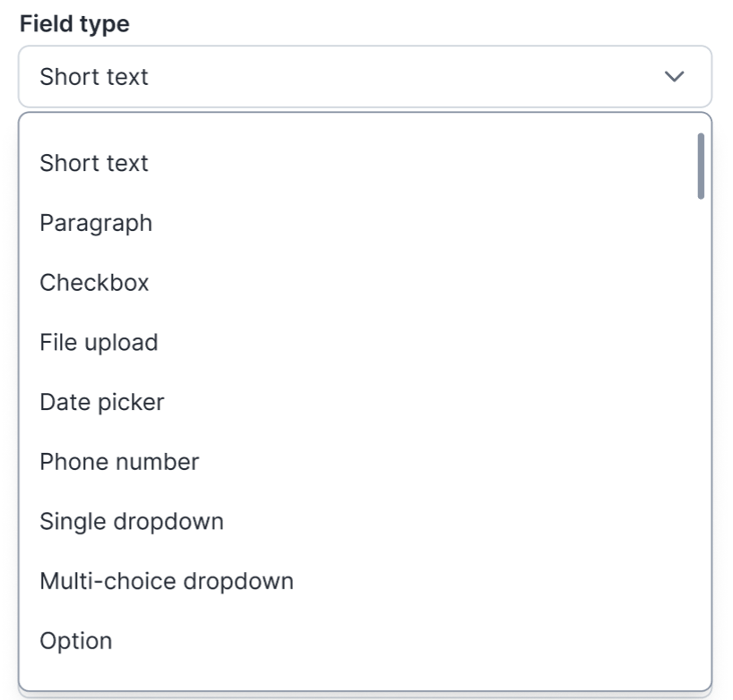 7 Caption Keterangan field. 8 Required field Aktifkan toggle tersebut apabila terdapat field yang wajib diisi. 9 Preview Pratinjau field yang nantinya akan muncul. Berikut detail tampilan setiap Field type yang dipilih: