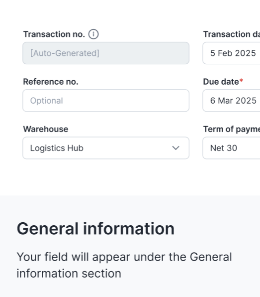 Sebagai contoh, Anda ingin membuat Custom field terkait kolom reference number untuk halaman Purchase invoice request.