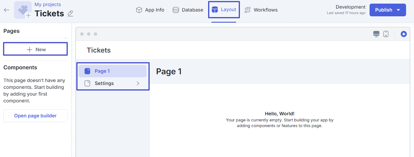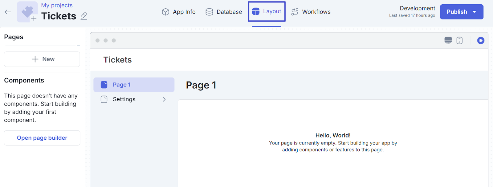 Pada saat pembuatan aplikasi, Anda akan otomatis masuk ke tab Layout. Pada tab Layout terdapat Form page yang dapat membantu Anda untuk menambahkan, mengubah dan mengelola data dengan mudah. Berikut langkah-langkahnya.