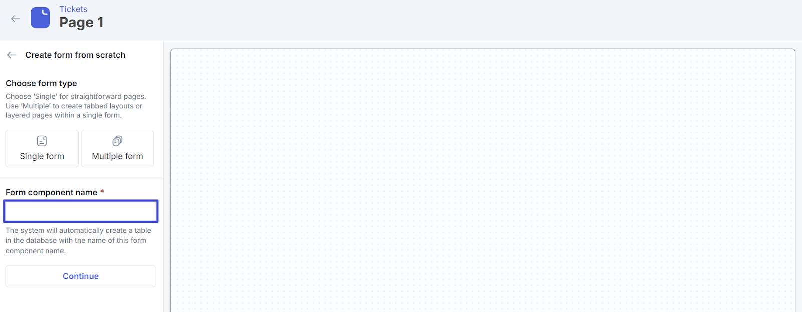 Masukkan Form component name. Isi dari nama component ini akan otomatis dijadikan sebagai nama table dari form yang akan dibuat.