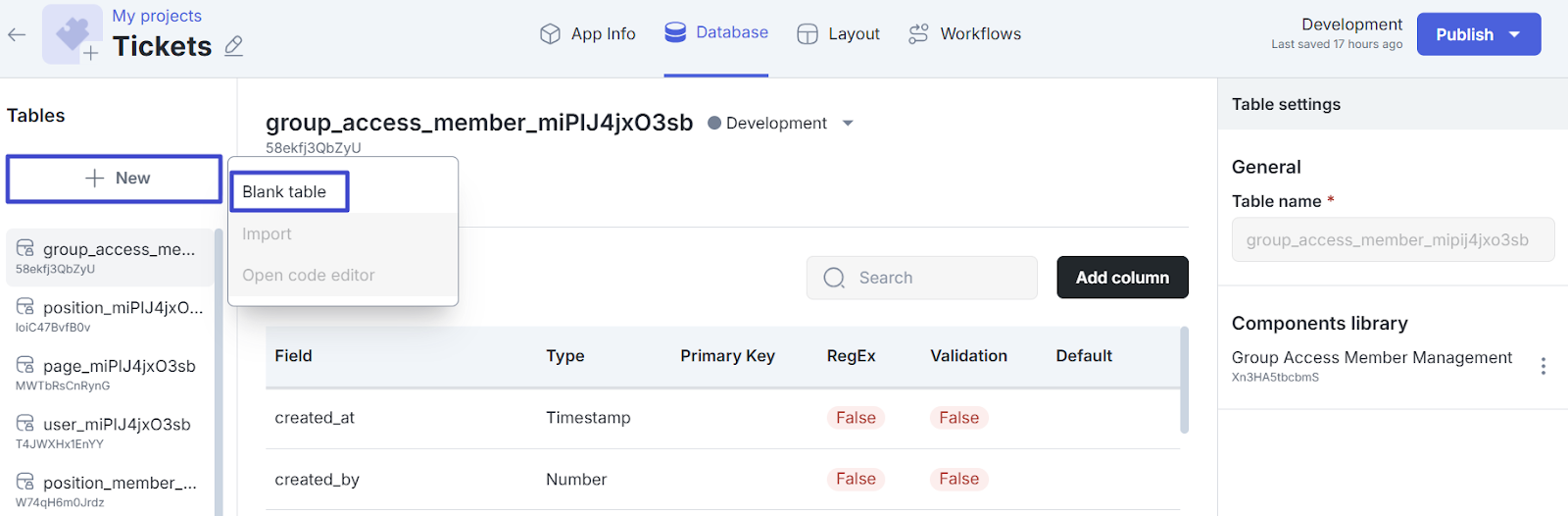 Pada saat pembuatan aplikasi di Mekari Officeless, Anda dapat menambahkan tabel baru sesuai dengan kebutuhan aplikasi. Berikut langkah-langkahnya.