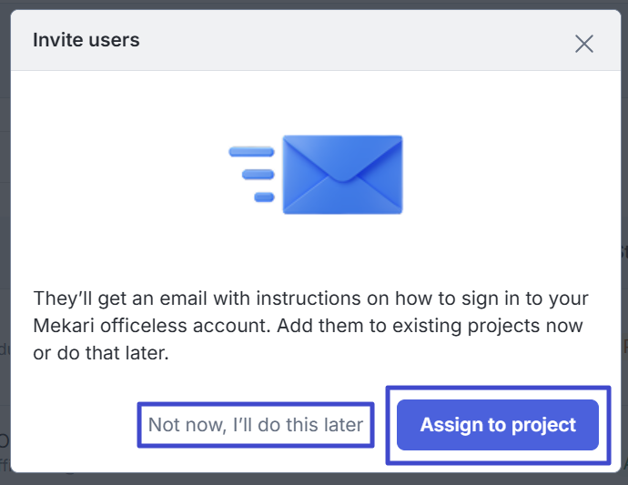 Anda juga dapat langsung menambahkan project pada pengguna tersebut dengan klik “Assign to project”. Namun jika tidak ingin menambahkan project klik “Not now, I’ll do this later”.