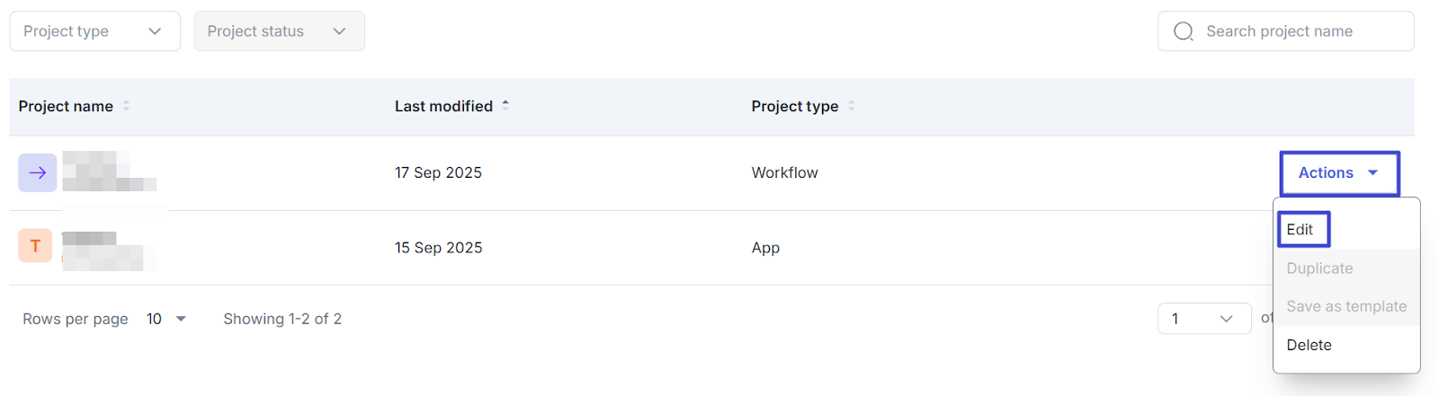 Klik “Actions” dan pilih Edit pada bagian workflow.