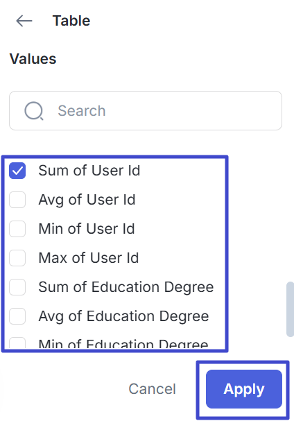 Pilih kolom numerik yang ingin dianalisis. Anda juga dapat menambahkan beberapa value lainnya jika diperlukan.