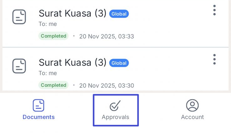 Pilih form atau dokumen yang ingin Anda setujui lalu klik ikon “titik tiga”.