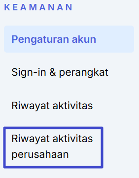 Selanjutnya, klik submenu “Riwayat aktivitas perusahaan”.