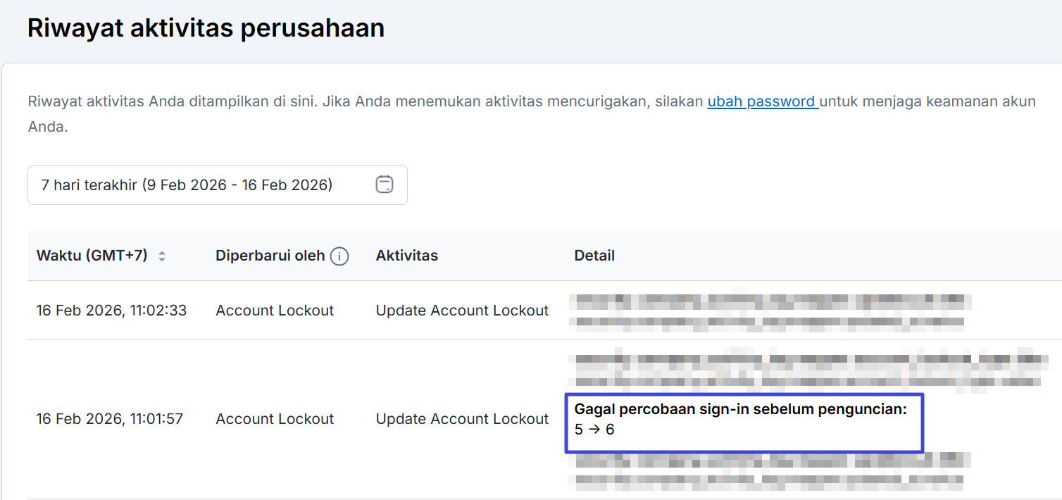Pada kolom Detail, Anda dapat melihat akun yang dikunci karena gagal login.